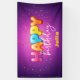 Get ready to transform any space into a vibrant fiesta with this dazzling banner! Across the purple backdrop, "HAPPY" bursts forth like a sky full of fireworks, each letter a bubbly balloon of pure fun in a kaleidoscope of pink, orange, blue, and yellow. It's a playful dance of colors that practically hums with excitement.