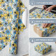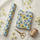 Playful Retro Floral Pattern, Soft Blue and Yellow Wrapping Paper