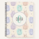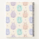 This adorable personalized notebook features whimsical and playful bunnies in a minimalist sketch style with watercolor washes in pastel shades of lavender, mint, and peach.