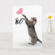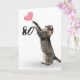 Gray tabby cat with pink heart balloon for 80th birthday on white background.