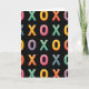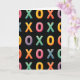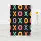 This card shows a repeating grid of X’s and O’s spread across a deep black background. Each letter is in a different color—pink, teal, orange, yellow, purple, and muted blue—so the pattern feels lively and fun. The letters look a bit rough and grainy, like they were dusted with chalk or sugar, and you can see tiny uneven spots that make them feel real. Light and shadow give each X and O a slightly raised, 3D look, so they stand out clearly from the dark space behind them. There isn’t any printed message on the front, so the design itself does the talking and leaves room for your own words inside. It brings to mind a simple game, which makes it a sweet way to say you enjoy being with someone and sharing small moments together 🥰. It also works nicely for a friend, because it feels like a quiet invitation to connect and keep the back-and-forth going ❤️. Share it as a warm way to pass along Valentine’s Day feelings.