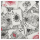 Scattered playing cards ~ aces, King, Queen and Jack. Originally drawn in ink. Half drop repeating pattern file for fabric, feel free to adjust scale as required.