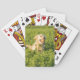 Customisable playing cards with a cover image of a Golden Retriever dog running in the fields with a tennis ball in her mouth.