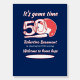 Step up to the plate for a legendary celebration! ⚾ This sporty 50th birthday design features the bold number 50 filled with a baseball pattern and topped with a classic baseball helmet, all in red and white on a dark blue background. The playful text “is playing his 50th inning” and “Welcome to home base” sets the tone for a fun, all-star celebration.