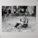 Old photo of pretty young girl on the beach wearing 1920s swimsuit, holding a possum that doesn't look happy. Nice 1920s fashion picture.