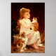 "Playing with the Kitten" is a beautiful image depicting a young girl playing with a kitten while mama cat watches. It was painted by the artist Emile Munier in 1893. Please note: This print works best in the custom size.