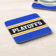 PLAYOFFS Vivid Blue Orange Black White Stripes Beverage Coaster