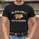 My 11 yo wore adult XL (5’7” 165#). The 8yo is small framed. She wore adult small and tied it in the back. Grandma wore adult large with long sleeve shirt underneath. Tall girl adult medium. Dark haired male adult large. Good quality dark Heather gray, Gildan brand shirt. -it was next up from basic choice and cost about $20 per shirt. Not too thick or thin. Washed and dried well, no major shrinkage. Not see-through. Can wear a bra under it fine. Screen print is just as shown and well done, front and back.
