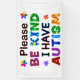 The messages of “Please Be Kind I Have AUTISM” to show autistic pride and raise awareness of autistic spectrum disorders and encourage kindness toward them.