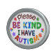 The messages of “Please Be Kind I Have AUTISM” to show autistic pride and raise awareness of autistic spectrum disorders and encourage kindness toward them.