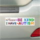 The messages of “Please Be Kind I Have AUTISM” to show autistic pride and raise awareness of autistic spectrum disorders and encourage kindness toward them.