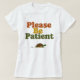 The image features the phrase "Please Be Patient" in colorful, gradient fonts. Below the text, there is a cute illustration of a turtle, reinforcing the message of patience. The overall design is cheerful and encouraging, promoting the virtue of patience in a lighthearted way.