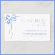 A thoughtful touch for a bride who cherishes tradition, this elegantly designed enclosure card invites guests to contribute a cherished recipe in lieu of a greeting card. Featuring a soft watercolor bow in a refined dusty blue, it adds a timeless sentimentality to the bridal shower experience. Whether passed down through generations or a modern culinary favorite, each handwritten recipe becomes a keepsake—ready to be collected in the bride’s new recipe book. Perfect for bridal showers with a personal, heartfelt atmosphere, this card ensures that love and legacy are woven into every dish.