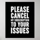 Please Cancel My Subscription To Your Issues Black & White Quote Saying Sarcastic Typography