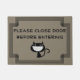 Please Close Door Before Entering Smiling Black Cat personalized funny doormat features a smiling black cat, a black art deco frame, and the funny saying "Please close door before entering," al on a taupe background. Guests will stop, laugh, and shake their heads; Strangers may think twice. Personalize this doormat by changing the background color, changing or adding text, such as your name, or images to make it uniquely yours, or use as is.
