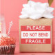 Sticker says Please do not bend Fragile on it.