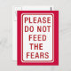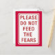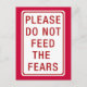 This design is done in the style of a "No Parking" sign, but this sign reads "Please do not feed the fears". Be strong and don't feed your fears with anxiety, stress or worrying. A great motivational gift idea for conquering your fears.