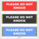 Please Do Not Knock Signs - Door sticker - A “please do not knock” sticker is a sign that you can display on your door, letterbox, or gate to tell door-to-door salespeople that you do not want to be disturbed by them. It is a way of revoking their implied licence to enter your property and knock on your door.