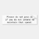A plain bumper sticker reading "Please do not pass me if you do not intend to maintain that speed."