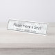 Please have a seat is the top line of the text. The second line says We will be with you shortly. The desk sign is faux white marble. The text is black. You can edit the text to show a custom message if desired.