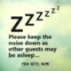Request hotel guests keep the noise down at night as other guests may be sleeping. Notice to make hotel guests aware that others may be asleep.