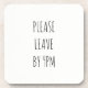 "Please leave by 9pm" a fun coaster to use, when you have guests who overstay their welcome.