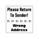 "Please Return To Sender!", "Wrong Address" Rubber Stamp