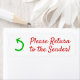 This label design features the message "Please Return to the Sender!", along with a decorative arrow shape. It could be used to indicate that received letter mail has been delivered to the wrong address or to an unknown recipient, and should be returned to the sender. [~Z0000168]