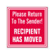 This basic rubber stamp design features the messages "Please Return To The Sender!" and "RECIPIENT HAS MOVED". It could be used to indicate that received letter mail may have been wrongly addressed, and should be returned to the sender.