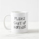 Mean, cruel, but ridiculously and unapologetically funny. This coffee mug is the perfect cup to have at home or at the office. Works well in all kinds of situations, especially conference calls and company meetings, when all you want to do is tell the people who are talking to shut up. Forever. Enjoy!