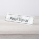 Please sign in is on a faux white marble desk name plate. The text is black. You can edit the text to show a custom message if desired.