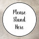 Please stand here black and white custom script text large circle Floor Decal sign.