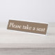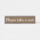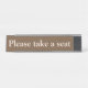 This corporate, professional design features the message "Please take a seat". This could be used in a reception area to inform customers, clients or patients that they will be served shortly, and that they should take a seat until then.