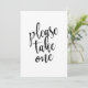 Plain white envelopes are included with paper invitations and will come to fit the invitation size you select. If you don’t need the envelopes, you may choose to not receive them by selecting the dropdown below "Envelopes" and choosing "None." If you’d like to have a design on your envelopes, you can browse all of these available envelopes to find the design that complements your Please Take One Affordable Wedding Sign Invitation.