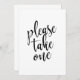 Yes, you can print on the back of your invitation for free! Most designs already have a corresponding design on the back that can be personalized using the Design Tool and going to Layers. This is a great way to communicate more information or further personalize your Please Take One Affordable Wedding Sign Invitation. The option is really up to you.