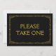 Simple and elegant art deco style "Please take one" wedding sign, personalized with your own text, features a gold art deco frame over a black background.