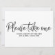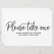 "Please take one" Wedding Favors Lettered Sign Invitation