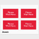 Please Wait Here Customizable Message Red Rectangular Sticker