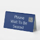 Please Wait To Be Seated QR Code Sapphire Blue Table Tent