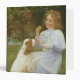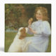The Pleasures of Hope (1890) by William Henry Gore is a vintage Victorian fine art animal portrait painting. The child is obedience training her dog to sit and is about to feed him a treat for good behavior. A young girl with her beloved pet spaniel puppy dog.