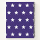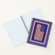 This patriotic design features the United States flag in vintage colors with the entire pledge of allegiance along the red stripes. The flag is surrounded by a border of blue and off-white with a background of white stars. The back side of the notebook is blue with white stars.