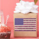 This patriotic design features the United States flag in vintage colors with the entire pledge of allegiance along the red stripes.