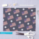 May the flag ever wave with this patriotic tissue paper. The background is blue with white stars and vintage colored United States flags with the words of the pledge of allegiance written across the red stripes.