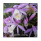 For hardy Orchid fans! Ceramic tile that features a photo image purple and white Pleione Orchid flowers, also known as Windowsill Orchids. A lovely, floral design! Select your tile size. Makes a great kitchen trivet!
