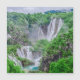 Oil painting of big waterfalls in Plitvice lakes national park, Croatia. Cascade of two big waterfalls in summer. Mountain forest waterfall landscape.