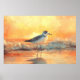 Plover Standing in Ocean Waves During Sunset Poster