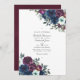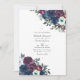 Plum and Navy Floral QR Code RSVP Wedding Invitation