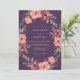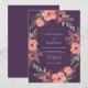 An artistic wreath of deep plum and coral blooms adorns this romantic design. Lush green foliage creates a natural, flowing border, evoking a whimsical, ethereal mood perfect for a special occasion.