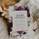 Chic floral bridal shower invitation features a border of burgundy marsala purple, blush pink, and dusty blue flowers, with lush botanical foliage and greenery and gold foil trim. Personalize with your bridal shower details in modern lettering on a vintage cream ivory off white background.