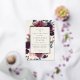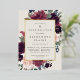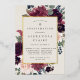 Chic floral confirmation invitation features a border of burgundy marsala purple, blush pink, and dusty blue flowers, with lush botanical foliage and greenery and gold foil trim. Personalize with your church ceremony and celebration details in modern lettering on a rich ivory off-white background.